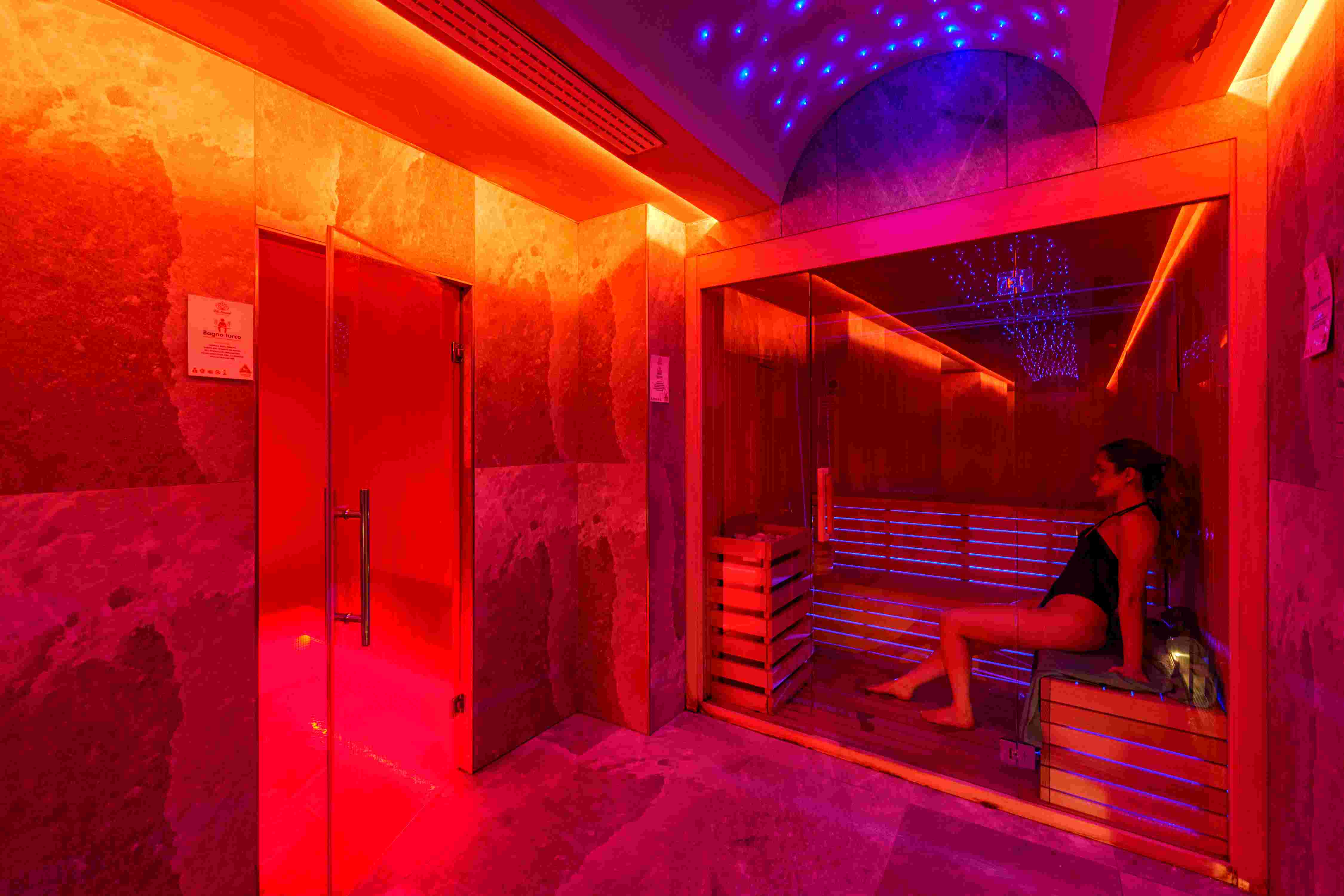 Giochi di cromoterapia, luci soffuse, candele profumate e un viaggio sensoriale tra idromassaggio, bagno turco e doccia emozionale: il nostro wellness centre è un autentico tempio del benessere. Un ambiente intimo e accogliente dove ritrovare l’equilibrio tra corpo e mente grazie a trattamenti naturali, lasciandosi avvolgere da un profondo senso di relax.
